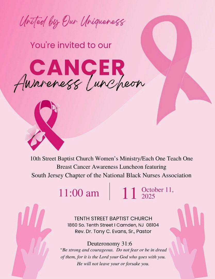 Join us for an empowering afternoon as we come together to raise awareness, share stories, and support one another in the fight against breast cancer. π Date: October 11, 2025π Time: 11 AMπ Location: 1860Β S. Tenth St., Camden, NJ 08104 This is more than just a luncheon β it's a movement. Letβs learn, uplift, […]